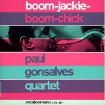The tunes were all natural choices—-even the two original “compositions” from Gonsalves. What more natural than a blues, and what more natural than its simple title P.G. Blues? The other original was a catchy melody which had been jumping around in Paul's head for quite some while. Boom-Jackie-Boom-Chick, a snappily rhythmic title, has more than a suggestion of the Latin-American timbre about it. The Jackie part of the title alludes to Paul's pal, club-owner, musician and fight-fan Jackie Sharp. The Boom is the beat and as for the Chick part, well your guessis as good as mine.